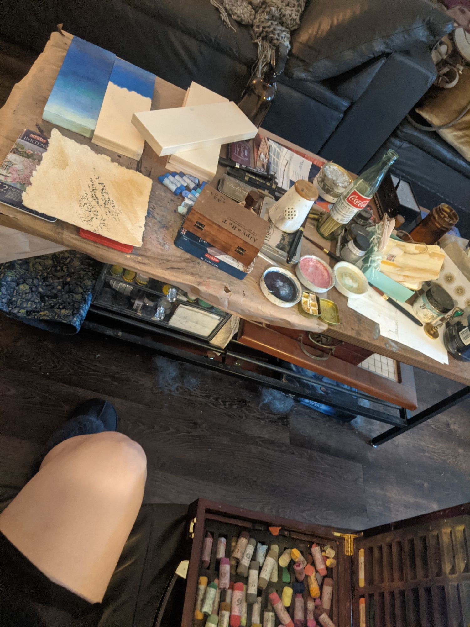Then I redirected my thought pattern to stave off the anxiety, and found myself begging, inside, to please let me make some art to fend off this feeling… and so I did! I picked up an extra-soft pastel and got to work, bleeding out the feeling through the color onto the paper; I liked what I saw next. I got my angst out on paper and then got some real art going. I had to get past not caring whether or not it would sell and just make the damn art. So, who knows whether anyone will buy it, but at least I made some art.