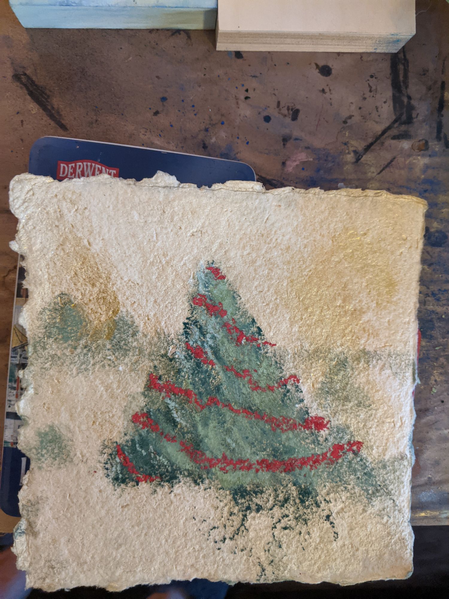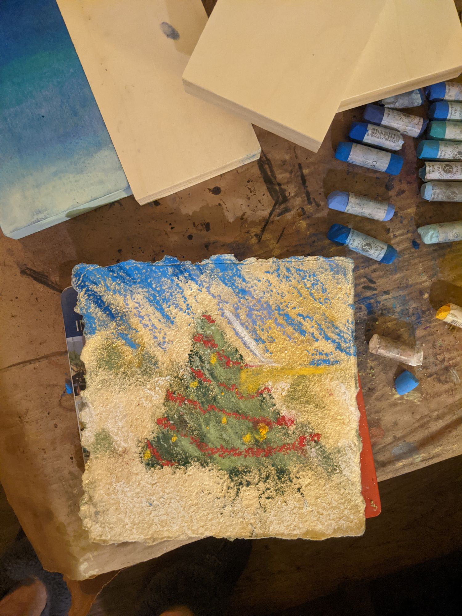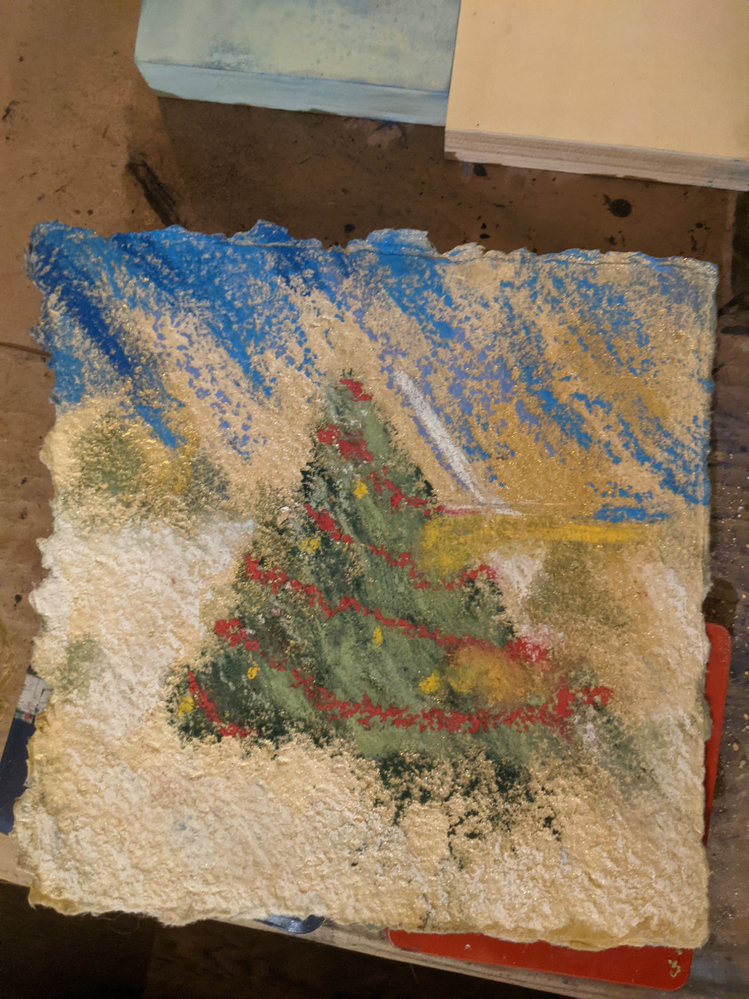 I really just wanted to make a Douglas fir and decorate it out in a snowy tree lot, and let it dissolve into geometric beauty. This color feels rich under my dirty fingerprints. I indulged in the idea of snow, and fir, and triangleness, and it felt good to the core. I made the arts, and that is what’s important.